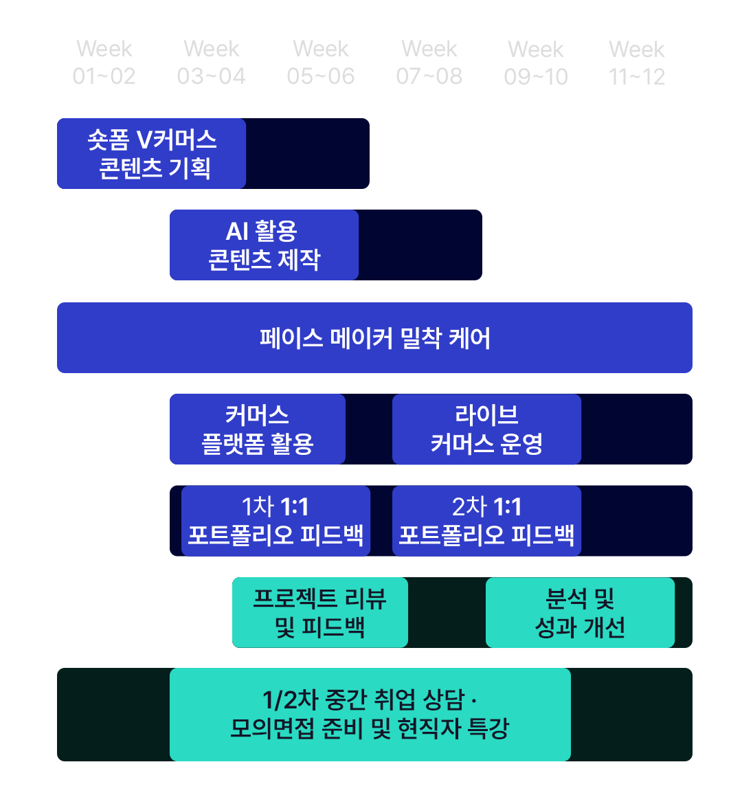 목록으로 서울시 새싹 [서울시 새싹]숏폼 V커머스 (with AI) 마스터 과정 교육기간 정규 3개월 교육비 2026 정책 변경으로 자부담 10% 도입, 훈련장려금으로 실부담 O원 K-디지털 ·국기 · 취준생 과정 90% ~ 최대100% 지원 지금 합류하면 혜택 ALL 제공 500만원 상당 AI+실무 활용 인강 50+ 협력기업 취업연계 (면접 멘토링) 매달 20만원 훈련장려금 온라인 학습 시스템 제공 · 교재 지원 1차 개강12월 15일(월) SeSAC V커머스 숏폼 취업연계 과정 “다른건 몰라도 서울시에서 하는거니깐 시작” 50개+ 협력기업과 함께!에서 취업까지 직행! 실무 네트워크를 통해 취업 성공까지 한 번에! 기초 지식 부족해도 경력자 같은 V커머스 전력가로 성장 기초부터 탄탄하게 실무 중심의 교육을 통해 영상콘텐츠 편집제작 분야 취업률 85%를 자랑합니다. 85% 기초 지식 없이 시작한 수강생 비율 영상광고콘텐츠 분야 취업률 초 압축된 3개월 AI 뷰티·패션 V커머스 실무 다양한 브랜드 숏폼 제작 실무자의 경험으로 완성하는 차별화된 영상콘텐츠 편집제작 프로젝트를 경험할 수 있습니다. 3개월 90% 실무자 능력 3개월이면 충분 숏폼 제작 실무 능력 Point 01 지금 합류하면 풀패키지 혜택 전원 지급 취업·실무·멘토링까지, 놓치면 손해! 혜택1 촬영을 위한 스튜디오 대관 지원 혜택2 최신노트북 AI 유료버전 지원 (30만원 상당) 혜택3 학습 집중을 위한 런치 지원 혜택4 온라인 강의 무료 지원 (200만원 상당) 혜택5 관련 기업 멘토링 지원 혜택6 기업 매칭, 취업 컨설팅 지원 Point 02 AI가 당신의 크리에이티브를 확장, 영상 기획·제작·촬영으로 ‘진짜 일’을 경험 숏폼 콘텐츠 기획 & 제작 AI로 틱톡·릴스용 영상 기획부터 제작까지, 효율적이고 완성도 있게 배웁니다. 숏폼 플랫폼 운영 & 최적화 광고·콘텐츠 최적화 등 채널 운영 전 과정부터 인플루언서 마케팅 영상 제작까지 경험합니다. 라이브커머스 방송 운영 기획·진행·결과 분석까지 전 과정 실습으로, 실전형 콘텐츠 운영 능력을 키웁니다. AI 활용 콘텐츠 제작 ChatGPT·미드저니로 콘텐츠를 자동 생성하고, 작업 시간을 줄여 창의력을 극대화합니다. 데이터 분석 & 성과 개선 쇼핑몰 KPI 분석으로 콘텐츠 성과를 개선하고, 데이터 기반 기획과 마케팅을 연결합니다. 프로젝트 실습 & 포트폴리오 제작 실무형 V커머스 프로젝트로 역량을 강화하고, 완성도 높은 포트폴리오를 완성합니다. AI를 활용해서 영상 기획·제작·촬영까지 V커머스 실무 역량을 한 번에 완성합니다. 핵심 실무는 손으로 익히고, AI로 완성한 뷰티·패션 V커머스 프로젝트 숏폼 & V커머스 VANS 확인하기 숏폼 & V커머스 ROOTON 헤어 오일 확인하기 숏폼 & V커머스 ‘niceghostclub Blend’ 확인하기 “이걸 진짜 수강생들이 만들었다고?” V커머스 실무 역량을 한 번에 완성합니다. Point 03 압축된 3개월 과정으로 숏폼 V커머스(with AI)의 모든 것을 알려드려요. 숏폼v커머스 3개월 과정 week 01~04 : 숏폼 v커머스 콘텐츠 기획 week 03~06 : AI 활용 콘텐츠 제작 week 01~12 : 페이스메이커 밀착 케어 week 03~06 / week 07~10 : 커머스 플랫폼 활용 / 라이브 커머스 운영 week 03~06 / week 04~11 : 1차 1:1 포트폴리오 피드백 / 2차 1:1 포트폴리오 피드백 week 04~08 / week 09~11 : 프로젝트 리뷰 및 피드백 / 분석 및 성과 개선 week 03~10 : 1/2차 중간 취업상담·모의 면접 준비 현직자 특강 AI를 활용한 영상 촬영 & 제작 & 편집의 노하우를 모두 알려드립니다. AI 콘텐츠 제작, 커머스 플랫폼 활용, 라이브 커머스 운영까지 직접 경험해 볼 수 있습니다. 3개월 안에 집중 커리큘럼으로 가장 쉽고 빠르게 V커머스로 성장시켜 드립니다! 숏폼 V커머스(with AI) 교육 수료 후 취업까지 완벽하게 연계 숏폼 V커머스 마스터 수료 후 취업 지원 시스템으로 이력서, 자기소개서 작성 가이드, 동행면접 지원 등 협약기업에 입사 지원 기회를 제공합니다. 취업 지원 시스템 관리! 협력기업에서 현직 실무자의 채용 설명회 개최 및 멘토링, 취업 코칭 등 다양한 취업 지원 #이력서 작성법 #1:1 상담 컨설팅 #자기소개서 작성법 #취업지원(사후관리) 협약기업에 취업 지원 가능! 참여기업 및 지원 & 협약기업 등의 취업처를 확보하여 교육생에게 입사지원의 기회를 제공 (주)온애드온 (주)애드와이즈 (주)더윤컴퍼니 (주)엘케이이엔엠 (주)마인드매그넛 ···그 외다수 기업 3개월 후 협약기업을 통해 경쟁력 있는 숏폼 V커머스로 빠르게 취업 성공해 보세요! 취업으로 이어지는 경쟁력 대기업이 선택한 크리에이터가 가르칩니다. 삼성·LG가 선택한 감각, 현업이 인정한 실무력 임민아 강사 -실무 경력 7년 이상 -브랜드, 기업이 요구하는기획력과 퀄리티를 목표 프로젝트 경험 (프로젝트 리드 경험 다수) 삼성 파리 올림픽 메인 아트웍 LG 리뷰 럼플 프로젝트 리드 belif 시카밤 프로모션 아트웍 AI 뷰티·패션 커머스 실무 강의 만족도100% 10문항 중 7문항 Q. 교육과정에 대한 전반적인 만족도는 어떠하신가요? 100% Q. 강사진(강사, 멘토 등)에 대해 만족도는 어떠하신가요? 100% Q. 교육과정의 이젠아카데미에 대한 만족도는 어떠하신가요? 100% Q. 교본 과정이 교육목표 달성에 기여할 것으로 생각하십니까? 100% Q. 지인에게 본 과정의 참여를 권유할 